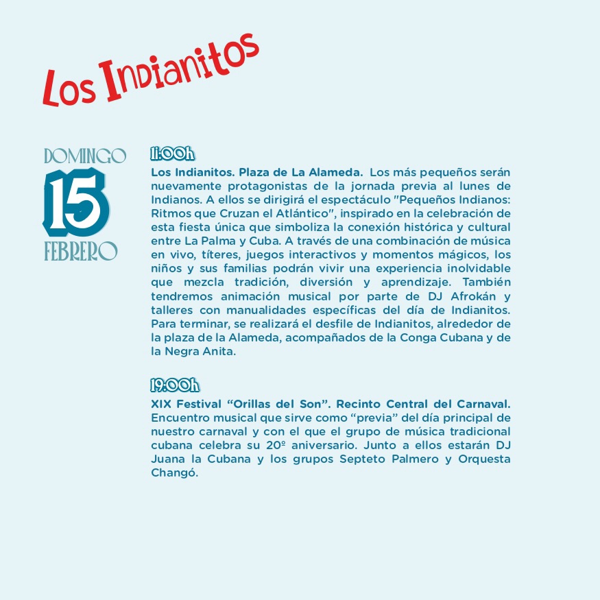 Antes del día de los Indianos, la mañana del domingo tiene lugar la cita de los Indianitos, una apuesta por iniciar a los más pequeños en las tradiciones del Carnaval.